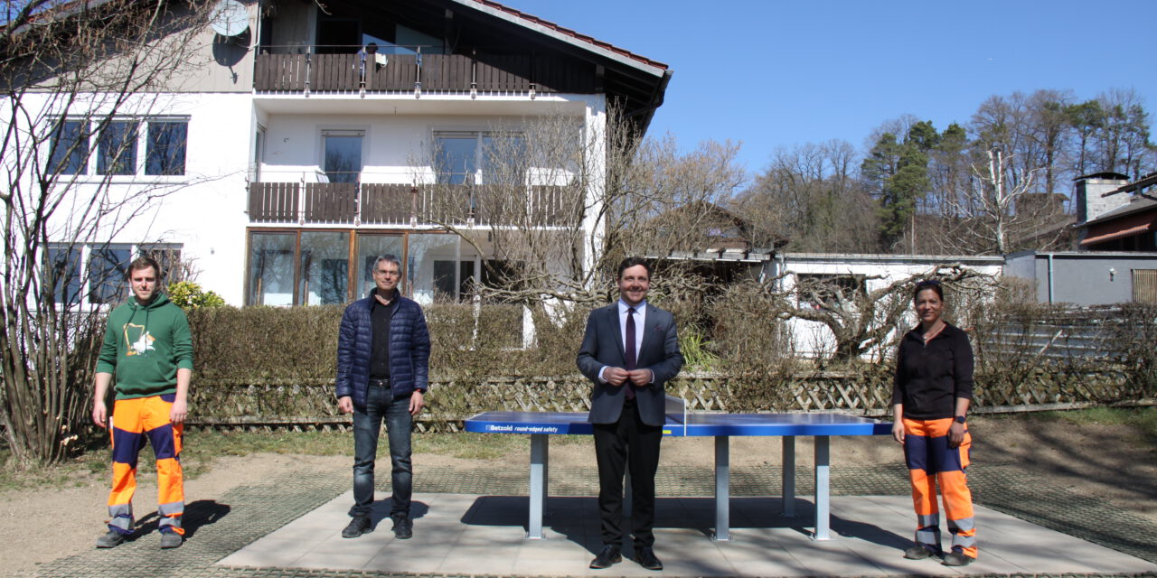 Bereits bei der Bürgerversammlung der Jugend im Herbst 2021 kündigte Bürgermeister Dangschat an, dass dem Bürgerwunsch nach einer Tischtennisplatte nachgegangen werden soll. Im Winter wurden sämtliche Planungs- und Vorbereitungsarbeiten getätigt und sobald es die Witterungsverhältnisse möglich machten, machte sich das Team der Stadtgärtnerei aus dem städtischen Bauhof ans Werk. Der Platz um das Sportgerät wurde mit einer stabilen Matte ausgelegt und ist somit auch für Rollstuhlfahrer zur Nutzung geeignet. In den etwas abgesenkten Zwischenräumen der Matte kann auch gut Gras wachsen.