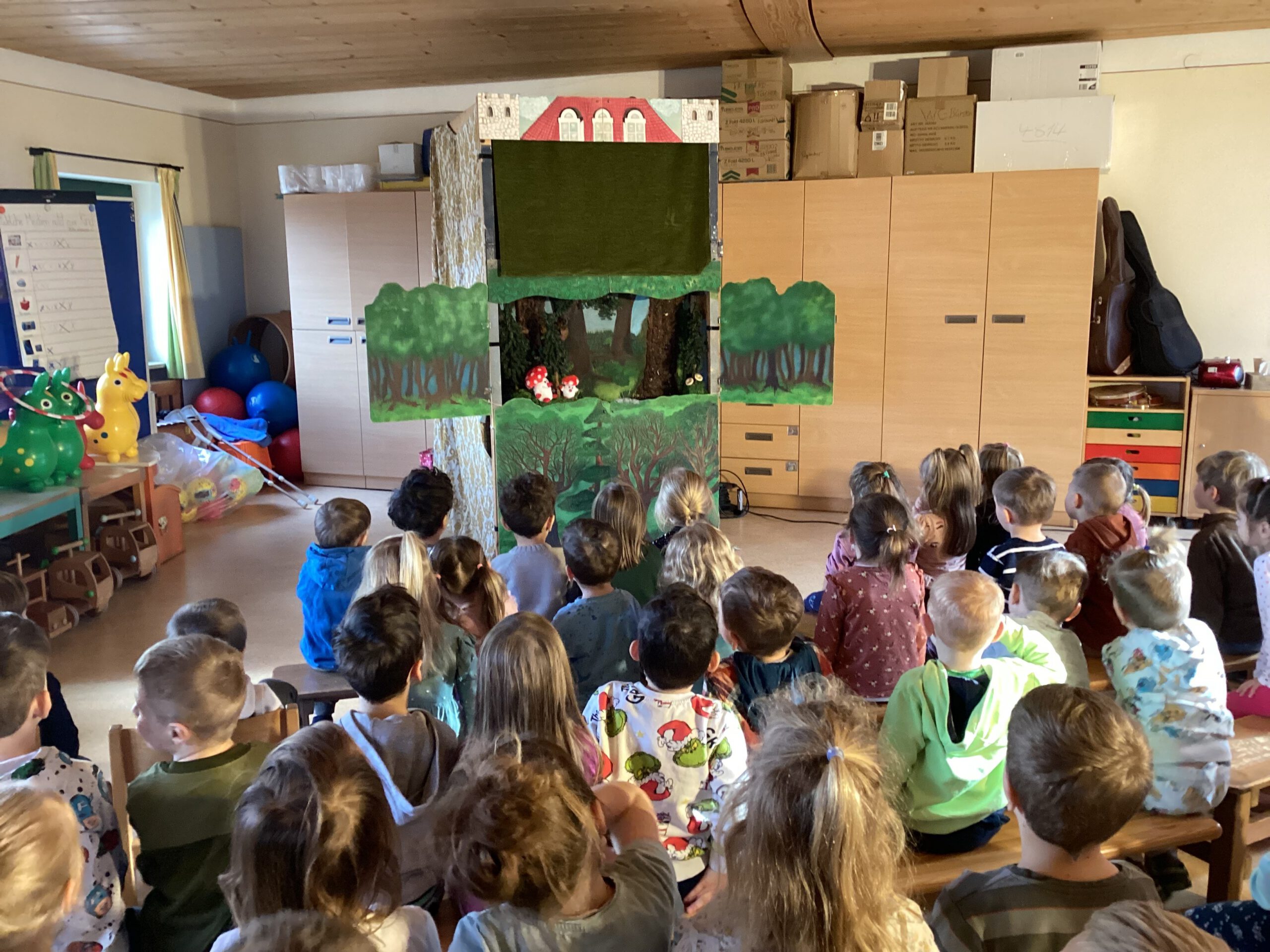 Ein Highlight in der Faschingszeit war der Besuch von „Annas Puppenbühne“ im Kindergarten mit dem Stück „Das Gespenst ohne Namen“, bei dem alle Kinder sehr viel Spaß hatten und viel gelacht wurde. Die Kosten hierfür übernahm für alle Kinder der Elternbeirat und dieser überraschte auch dieses Jahr wieder Kinder und Mitarbeiter an einem Tag zur Brotzeit mit leckeren Faschingskrapfen. Ein herzliches Vergelts´God dafür!